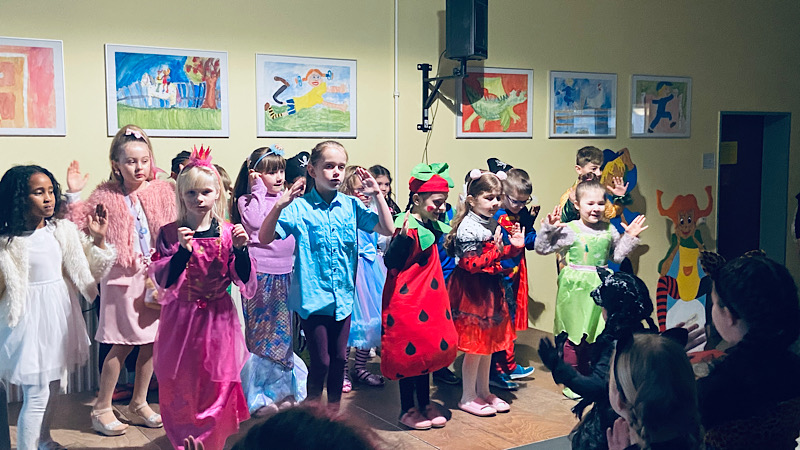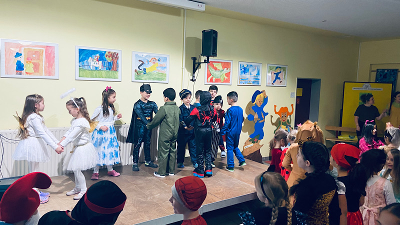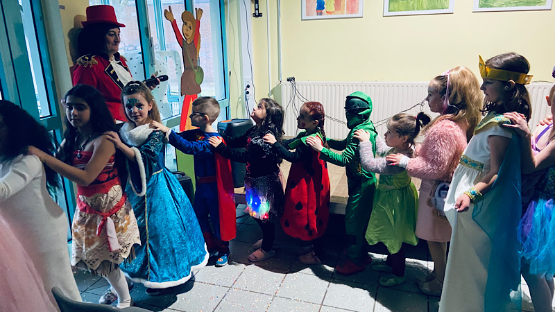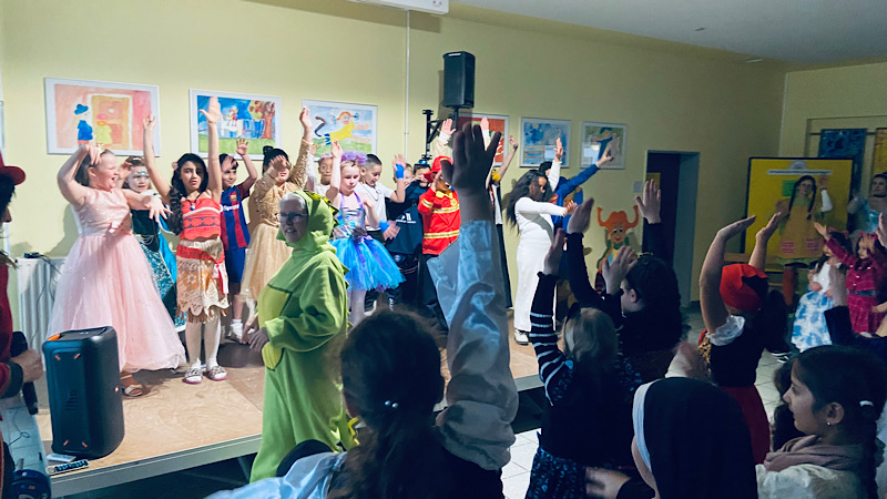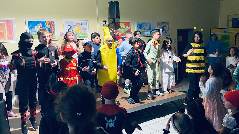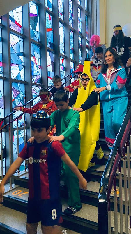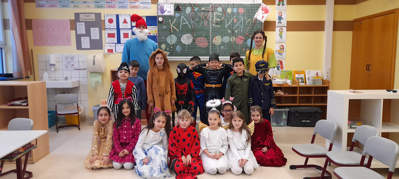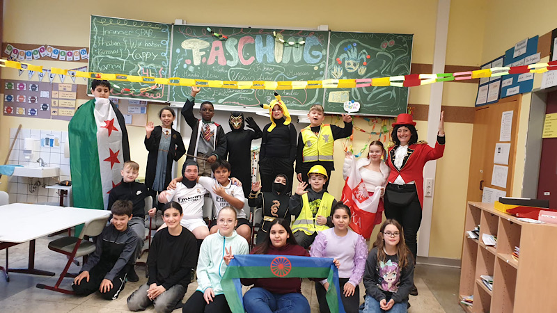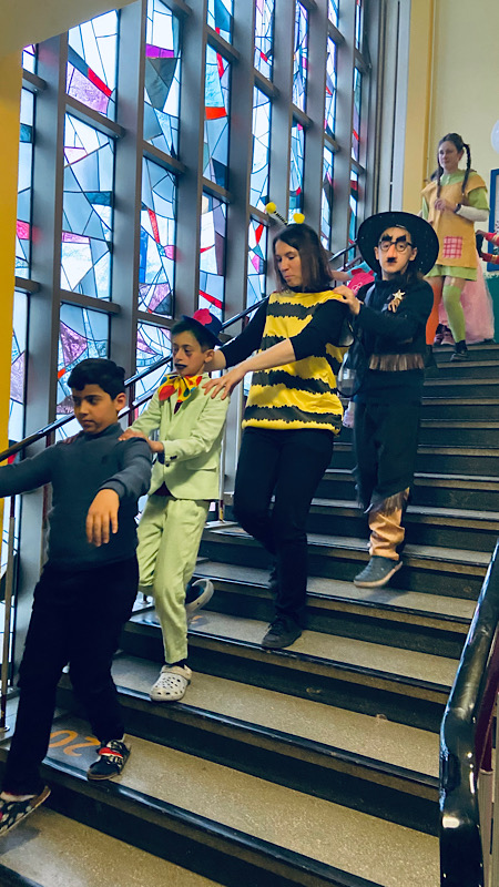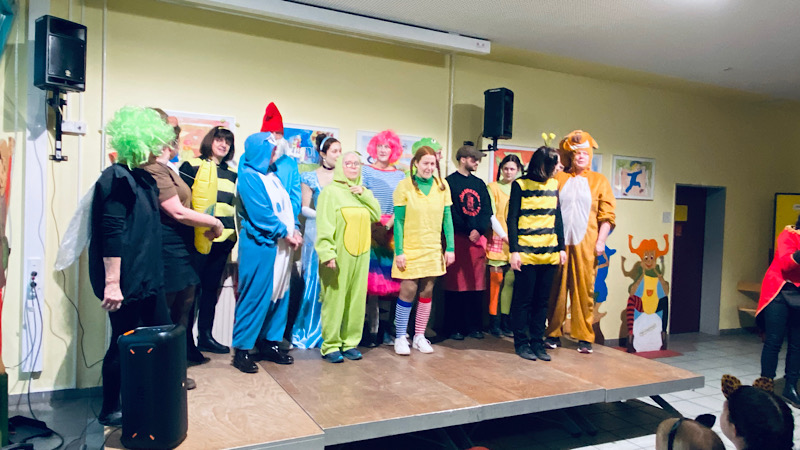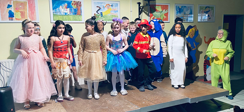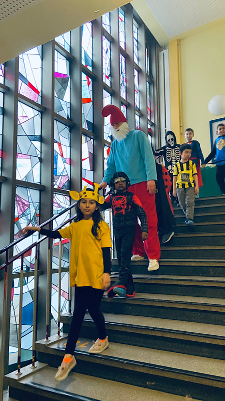 Unseren besonderen Applaus „Stampfen, Klatschen, Helau!“ hörte man wieder am 28.2. in der Eingangshalle. Die gesamte Schule feierte Karneval zusammen. Unsere Zirkusdirektorin (Frau Tigges) führte uns durch ein bunt gestaltetes Programm. Die Klassen hatten Lieder, Tänze, Pantomime und Montagsmaler zur Unterhaltung vorbereitet. Auch die vielen schönen Kostüme konnten alle Kinder und auch Erwachsene bestaunen. Dieses Jahr gab es ganz viele Prinzessinnen, Piraten, Ninjas, Batmans, Fußballspieler, Hasen, Katzen und Zauberer. Natürlich durfte die Polonaise durch die Schule nicht fehlen!